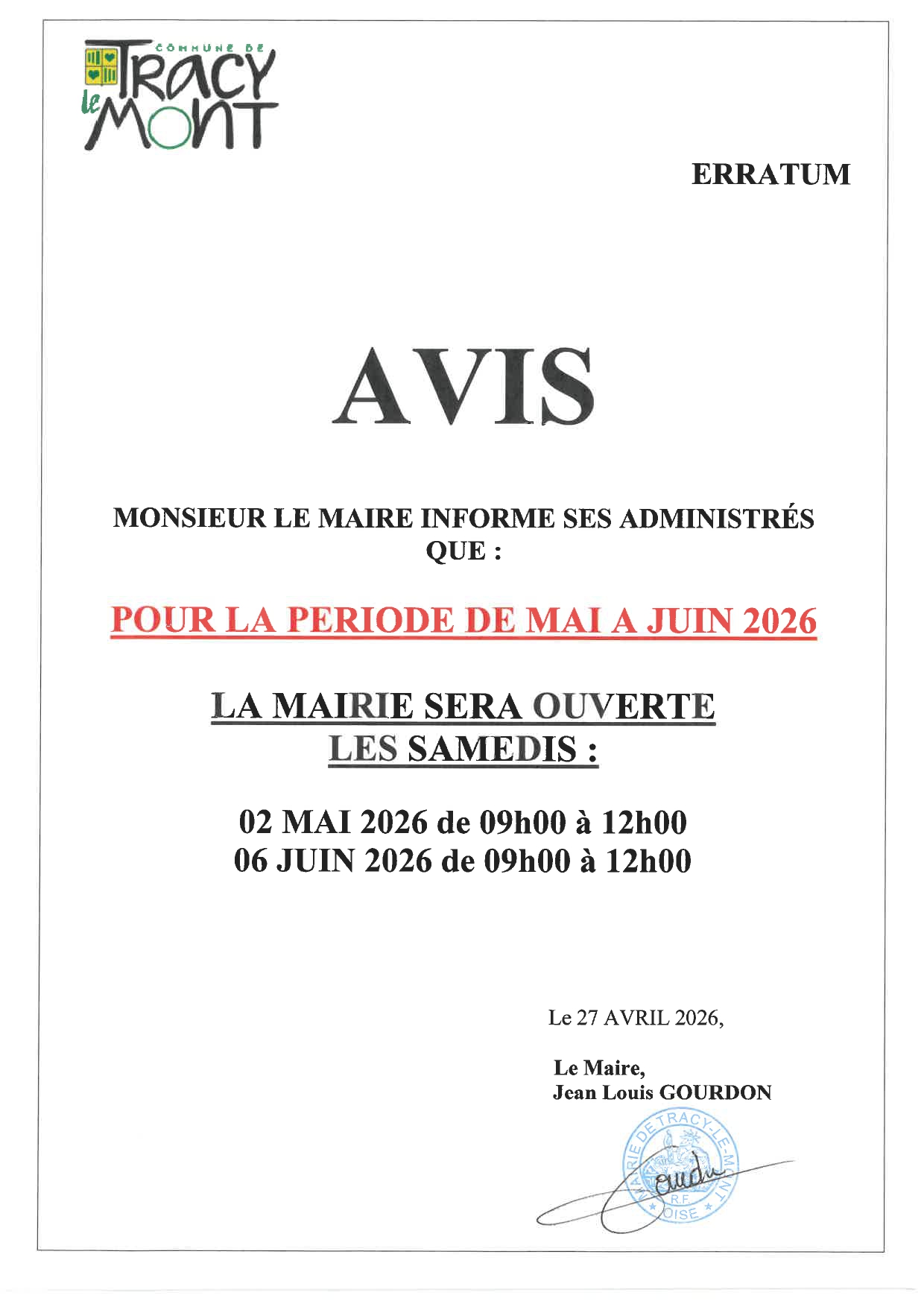 AVIS DE LA MAIRIE