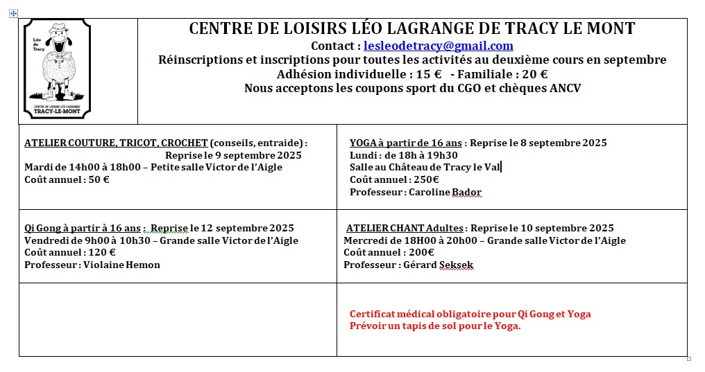 | Découvrez les différentes activitésLéo Lagrange à Tracy-le-Mont