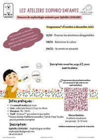 Pour les adultes Le lundi de 18 h 15 à 19 h 15 - Petite Salle Victor de l'Aigle Coût annuel : 210 € (7 € le cours) Professeur : Ophélie LEMAIRE Tél : 06 63 01 18 01 mail : sophrophelie@gmail.com A partir du Lundi 29 septembre 2025